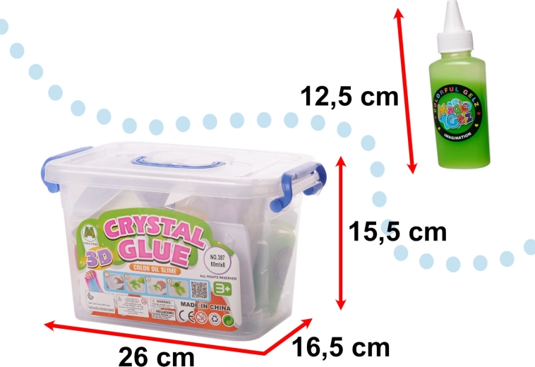 Żel możesz wlewać także bezpośrednio do roztworu i tworzyć własne, niepowtarzalne kształty. Tworzenie rozwija kreatywność, cierpliwość i małą motorykę, a także świetnie relaksuje dorosłych. Cały zestaw jest umieszczony w solidnym plastikowym boksie ułatwiającym przenoszenie i przechowywanie.