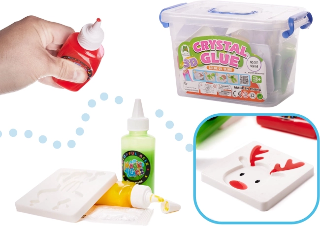 Zestaw zawiera żele, formy, pojemnik oraz saszetki z utwardzaczem w kompaktowym pudełku. Idealny w domu i w podróży, dla dzieci od 3 lat.