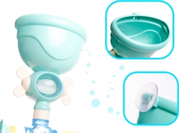Montaż zajmuje chwilę: mocne przyssawki trzymają się zarówno wanny, jak i płytek, dzięki czemu zabawka pozostaje stabilna. Niebieskie zawory pozwalają dzieciom regulować kierunek i przepływ wody, rozwijając zręczność, logiczne myślenie i koordynację oko–ręka.