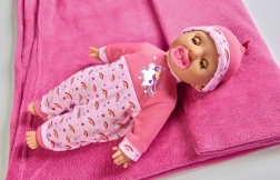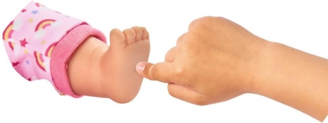 Lalka dostarczana jest w pięknym różowym ubranku z motywem jednorożca i tęczowych wzorów, który z pewnością ucieszy każde dziecko.