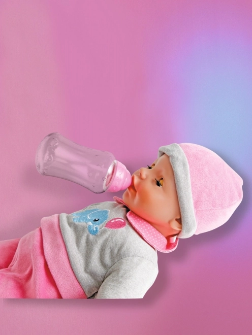 - Butelka i smoczek w zestawie pozwalają na pełne odtwarzanie opieki nad niemowlęciem.