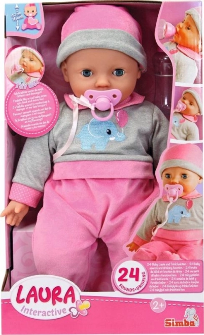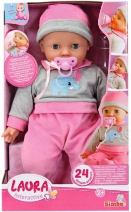 Interaktywna lalka Laura dostarcza dzieciom zabawy i opiekuńczej rozgrywki dzięki miękkiemu ciałku, zamykanym oczkom oraz możliwości wydawania 24 dziecięcych dźwięków. W zestawie znajduje się butelka i smoczek.