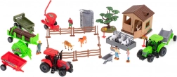 - Składana stajnia, 2 traktory, 3 przyczepy/nadstawki (np. kosiarka, prasa do bel, przyczepa na bele), silos, drzewo, 8 drewnianych elementów ogrodzenia, 8 łączników (podstaw) do ogrodzenia, 6 ceglastych elementów, koryto/poidło, figurki farmerów, zwierzęta, znaki ostrzegawcze i inne akcesoria
