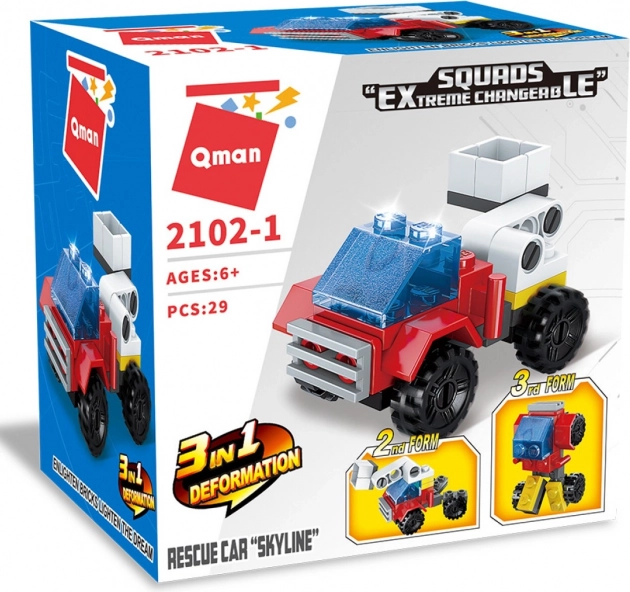 Zbuduj własny wóz ratunkowy 3w1 i w każdej chwili go przebuduj! Mini zestaw Qman Squros składa się z 29 elementów, jest kompatybilny z innymi markami i wykonany z trwałego, bezpiecznego dla zdrowia plastiku ABS. Świetny wybór do szybkiego budowania, kreatywnych pomysłów i zabawy w podróży.