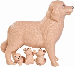 Dzieci mogą karmić, nosić i układać do snu trzy szczenięta u psiej mamy – idealne do zabawy w opiekę i rozwijania empatii.