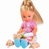 Z tym uroczym zestawem dzieci spędzą długie godziny na zabawie w opiekę nad zwierzątkami. Lalka Evi ma stylowy strój, a razem z psia mamą i trzema szczeniętami tworzą idealny świat do pomysłowych historii. W komplecie są też akcesoria, które wspierają zabawę w odgrywanie ról i naukę odpowiedzialności poprzez zabawę.