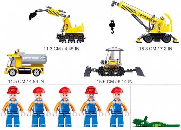 Sluban Plac budowy zawiera wszystkie niezbędne elementy do stworzenia pełnowartościowego terenu budowy z 465 elementami.