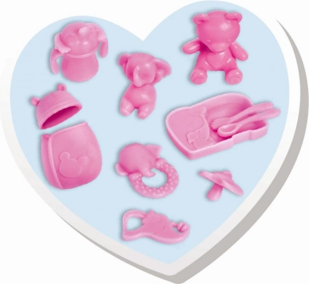 W zestawie znajdują się tematyczne akcesoria do opieki nad niemowlęciem – dla jeszcze bardziej kreatywnej i dłuższej zabawy w rodzinę.