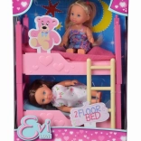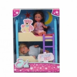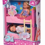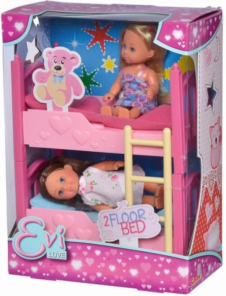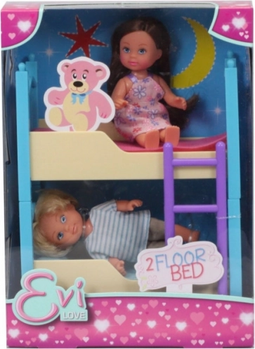 Stwórz przytulny pokoik dla swoich lalek z czarującym zestawem Evi Love. Dwie małe laleczki mogą spać na łóżku piętrowym z praktyczną drabinką, dzięki czemu wieczorne kładzenie do łóżeczka jest równie zabawne jak dzienna zabawa.