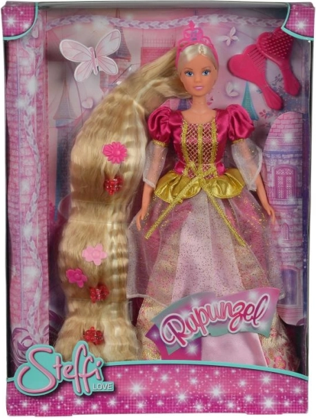 Lalka Steffi Roszpunka ma piękne blond włosy, które można czesać i stylizować według własnej fantazji. Przyjdzie do Ciebie w wysokości 30 cm, ubrana w elegancką, balową suknię z brokatem i ozdobiona pasującą koroną. Jej długie włosy są idealne do tworzenia zachwycających fryzur. <7fp>