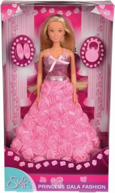 Elegancka lalka Steffi Love Księżniczka Gala oferuje dzieciom możliwość zanurzenia się w świecie mody i fantazji. Ubrana w przepiękną suknię z różanymi wzorami i wyposażona w torebkę, jest idealna na każdą zabawową przygodę.