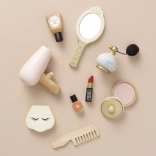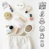 Zostań gwiazdą własnego show z tą stylową kosmetyczną torebką dla dzieci! Zawiera wszystko, co potrzebne do zabawy w wizażystę – od kremu po suszarkę. Wykonana z naturalnej bawełny i wysokiej jakości drewna z certyfikatem FSC®, ręcznie domalowana ekologicznymi farbami. Wspiera wyobraźnię, małą motorykę i zabawę w odgrywanie ról.