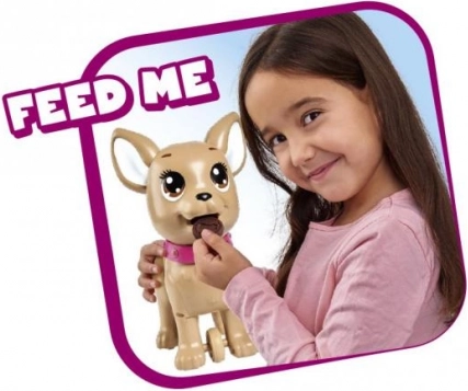 Interaktywny piesek chihuahua Poo Poo od CHI CHI LOVE zapewnia dzieciom realistyczną, a jednocześnie bezpieczną zabawę w opiekę nad pupilem. Uformuj smakołyk z masy plastycznej, nakarm pieska i wyrusz na spacer – po delikatnym naciśnięciu smyczy piesek ugnie tylne łapki i zrobi kupkę, którą można łatwo posprzątać za pomocą dołączonych woreczków.