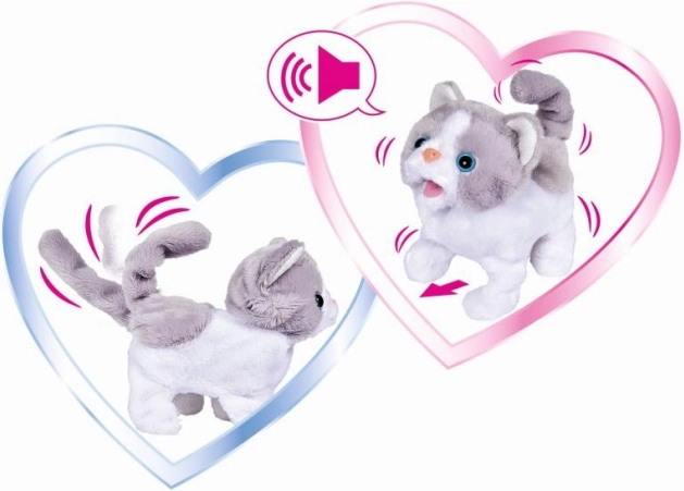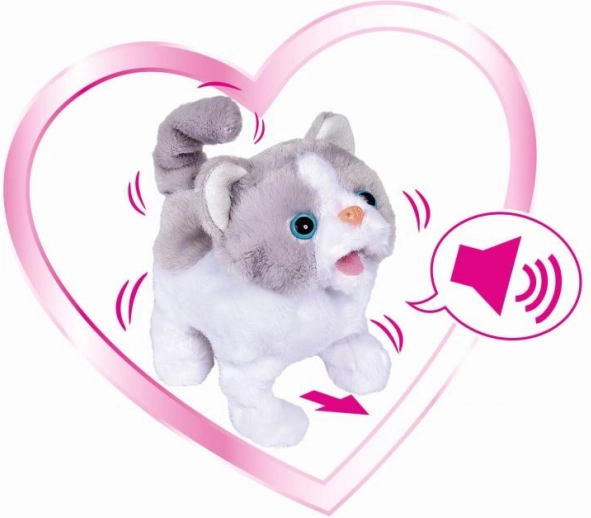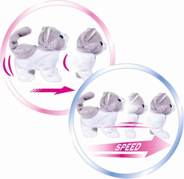 Urocza interaktywna kotka z miękkiego pluszu ucieszy każde dziecko. Porusza się z dwiema prędkościami, macha ogonkiem i wydaje zabawne dźwięki. Idealna towarzyszka do codziennej zabawy i przytulania.