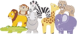 Ten wesoły zestaw wnosi do dziecięcego pokoju odrobinę dzikiej przyrody. Dzieci mogą układać jak najwyższą wieżę ze zwierzątek – żyrafy, lwa, słonia, zebry, małpki, nosorożca, geparda, krokodyla i papugi – ćwicząc przy tym równowagę, cierpliwość i wyobraźnię. Zabawa w równoważenie rozwija logiczne myślenie oraz wspiera postrzeganie kształtów i kolorów.
