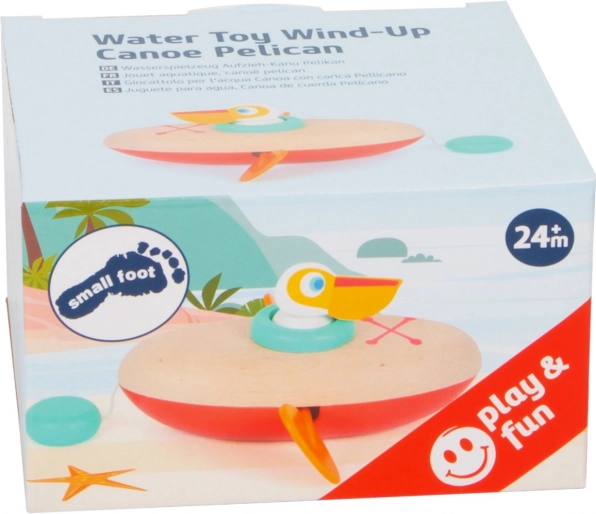 Wesoły pelikan w kanoe marki SMALL FOOT dzięki mechanizmowi nakręcanemu sam porusza się po powierzchni wody. Połączenie drewna i wysokiej jakości tworzywa sztucznego gwarantuje trwałość i długą żywotność. Idealny do wanny i na basen, rozwija małą motorykę oraz rozumienie przyczyny i skutku.
