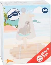 Odkryj zabawę na falach z drewnianą tratwą small foot, stworzoną dla małych marynarzy. Dzięki naturalnym materiałom, solidnemu wykonaniu i tekstylnemu żaglowi z wesołym motywem morsa dzieci spędzą długie godziny na zabawie podczas każdej kąpieli. Zabawka nadaje się do wanny, miski, basenu i spokojnych naturalnych akwenów – wystarczy położyć ją na wodzie i pozwolić płynąć.