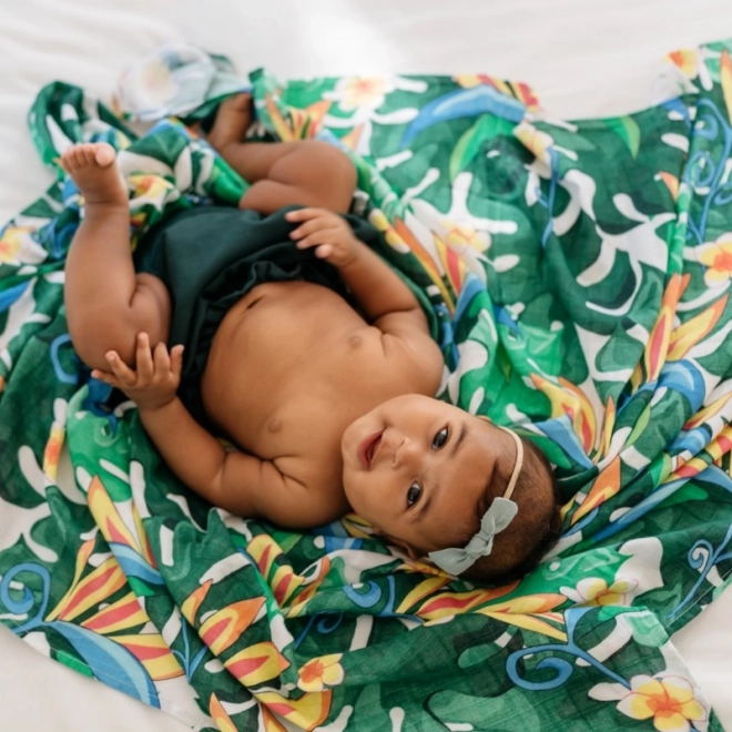 Lekka i puszysta bambusowo-bawełniana pieluszka muślinowa Tommy Lise we wzorze Lush Garden jest delikatna dla skóry dziecka, oddychająca, chłodząca i przyjemna w dotyku. Dzięki dużemu rozmiarowi 120 × 120 cm wykorzystasz ją jako kocyk, otulacz oraz osłonę podczas karmienia piersią.