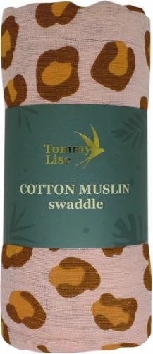 Hojny rozmiar 120 × 120 cm oferuje dziesiątki zastosowań: od otulania, przez okrycie w wózku, po śliniak czy podkład. Stylowy nadruk lamparta w koralowych tonach cieszy oko i pięknie komponuje się z dziecięcym pokoikiem oraz wyprawką w podróży.