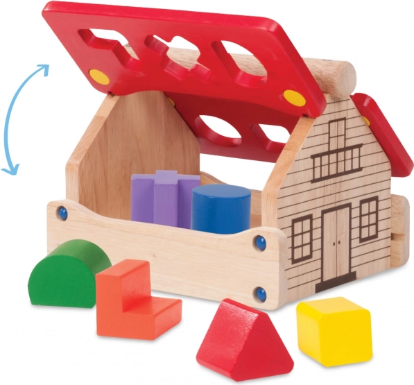 Ta drewniana układanka w kształcie domku to coś więcej niż tylko zabawka. Dzieci cieszą się nie tylko zabawą, ale też nauką. Domek z otwieranymi elementami dachu służy jako przestrzeń do przechowywania drobnych przedmiotów, co czyni go nie tylko funkcjonalnym, ale i praktycznym. Układanka jest wykonana z trwałego masywnego drewna, które łączy naturalny wygląd z atrakcyjnymi kolorami.