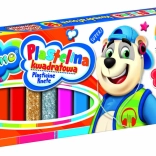 Kwadratowa plastelina BAMBINO z 18 kolorami, w tym 2 brokatowymi (złoty i srebrny), jest elastyczna, łatwa w modelowaniu, nie przykleja się do podłoża i nie brudzi rąk. Jest bezpieczna dla dzieci i spełnia wymagania 2009/48/WE. W zestawie znajduje się mata do tworzenia gratis.