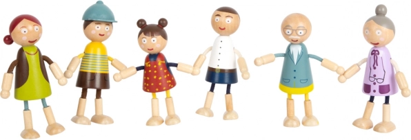 Z tymi drewnianymi figurkami od Small Foot możesz łatwo ożywić swój domek dla lalek. Figurki wykonane są z wysokiej jakości drewna i mają elastyczne części, co umożliwia ich umieszczanie w różnych pozycjach. Zestaw zawiera mamę, tatę, babcię, dziadka, brata i siostrę, wszystkie doskonale dopasowane do dziecięcych rąk.