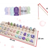 Drewniana edukacyjna gra 2 w 1: sorter kształtów, liczydło i magnetyczne rybki