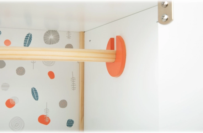 Drążek z wieszakami, wyjmowane półki i dolna szuflada utrzymają ubranka i akcesoria dla lalek zawsze czytelnie posegregowane.