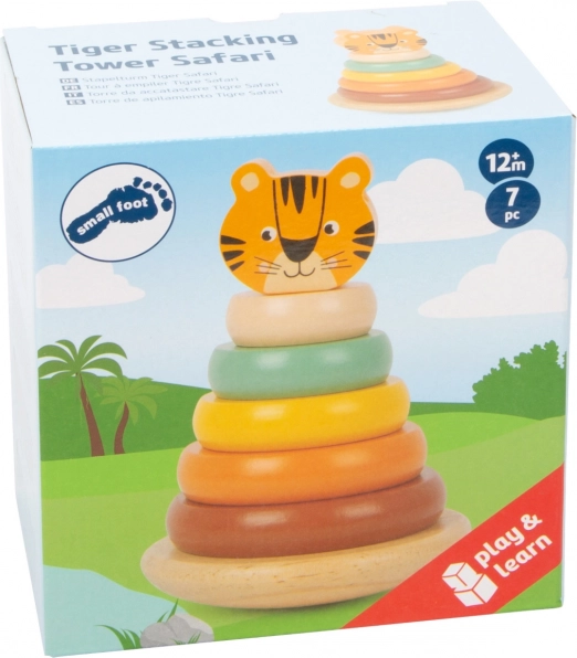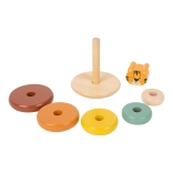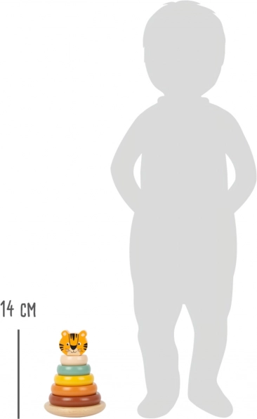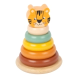 Ta imponująca nakładana wieża z motywem tygrysa jest nie tylko piękną zabawką, ale także doskonałym narzędziem do rozwoju umiejętności dziecka. Składa się z 7 elementów, w tym podstawy i sześciu kolorowych pierścieni, które można nakładać na drążek zakończony głową tygrysa. W ten sposób dzieci ćwiczą koordynację ręka-oko i zrozumienie kształtów.