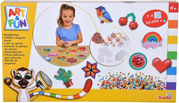 Odkryj świat pikselowej twórczości z zestawem koralików do zaprasowywania ART & FUN od SIMBA. W opakowaniu znajdziesz 10 000 kolorowych koralików oraz 5 wielokrotnie używalnych podkładek, na których ułożysz dowolne motywy. Po przykryciu papierem do pieczenia i zaprasowaniu przez osobę dorosłą koraliki połączą się i utwardzą w trwałą dekorację.