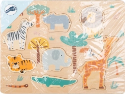 Drewniane puzzle safari od small foot to idealna pierwsza układanka dla małych odkrywców. Każdy element przedstawia zwierzę z sawanny i dokładnie pasuje do wyfrezowanej pozycji, co wspiera prawidłową koordynację ręka–oko oraz wyobraźnię przestrzenną.