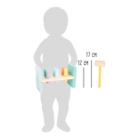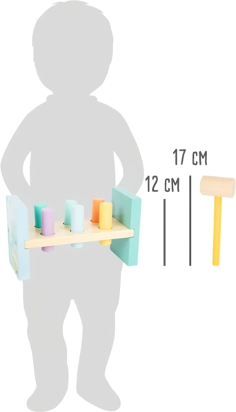 Ta zabawka została zaprojektowana z myślą o rozwoju drobnej motoryki i koordynacji ręka-oko u dzieci. Kolorowe kołki i mały młotek zachęcają do zabawy, poprawiając siłę i koordynację dziecka.