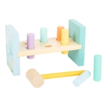 Odkryj urok tradycyjnej zabawki w nowoczesnym wydaniu. Nasza zabawka młotkowa w delikatnych pastelowych kolorach jest idealna dla dzieci, które chcą sprawdzić swoją siłę i jednocześnie poprawić swoje umiejętności motoryczne. Ilustracje zwierzątek nadają tej zabawce unikalny wygląd. Po zabawie wbijaniem wszystkich kołków można łatwo obrócić zabawkę i zacząć od nowa.