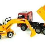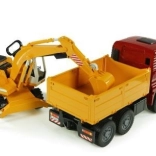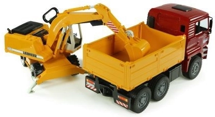 Ten wyjątkowy zestaw budowlany firmy Bruder obejmuje samochód ciężarowy MAN TGA z miękkimi oponami i praktyczną wywrotką. W komplecie znajduje się także funkcjonalna koparka Liebherr, która wyróżnia się stabilizującymi podporami, profilowanymi oponami oraz ramieniem z kabiną obracającą się o 360°. Produkt został starannie wykonany w Niemczech z trwałych materiałów.