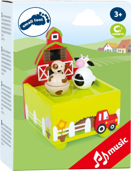 Urocza pozytywka z motywem farmy od small foot zapewnia dzieciom spokojne zasypianie. Przy melodii piosenki „Wujek Donald miał farmę” figurki krowy i pieska delikatnie się obracają. Dzięki wysokiej jakości drewnu, solidnemu wykonaniu i nakręcanemu mechanizmowi to piękny dodatek do każdego dziecięcego pokoju.