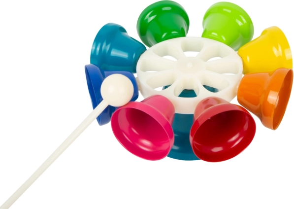 Dołączoną białą pałeczką dzieci łatwo wystukają rytm i melodię. Na dzwonkach można grać na stojaku lub trzymając je w ręce.