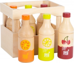 Ta stylowa drewniana skrzynka z zestawem 6 butelek napojów to idealne uzupełnienie dziecięcej kuchni lub stoiska sklepikowego. Dzieci ćwiczą wyobraźnię, umiejętności społeczne oraz motorykę małą podczas serwowania „lemoniad” i zabawy w sklep.