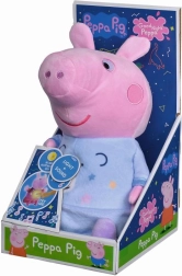 Mięciutki materiał, niebieska piżamka z motywem gwiazdek oraz przyjazny wyraz twarzy Peppy zachęcają do przytulania i zabawy.