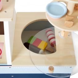 Przezroczysta witryna i zamrażarka umożliwiają realistyczną zabawę i prezentację lodów.