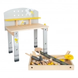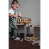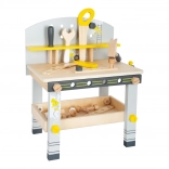 Dzięki realistycznemu designowi stół warsztatowy daje dzieciom możliwość przeżycia prawdziwego warsztatowego doświadczenia i rozwijania ich kreatywności oraz umiejętności motorycznych.