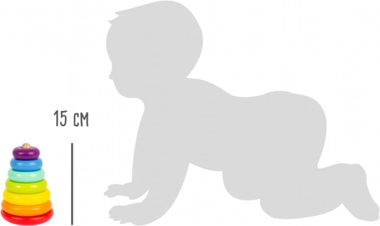 Ta wieża do układania pozwala dzieciom rozpoznawać i sortować kolorowe krążki według ich rozmiaru i koloru. Dzięki zaokrąglonej podstawie wieża może się kołysać, co zapewnia jeszcze więcej radości i zabawy. Solidna drewniana konstrukcja jest idealna do długotrwałej zabawy, także dla najmłodszych.
