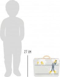 Wytrzymała drewniana walizka z metalowym zapięciem i uchwytem dopasowanym do dziecięcych rąk oferuje niezawodne i bezpieczne przechowywanie.