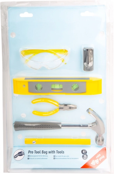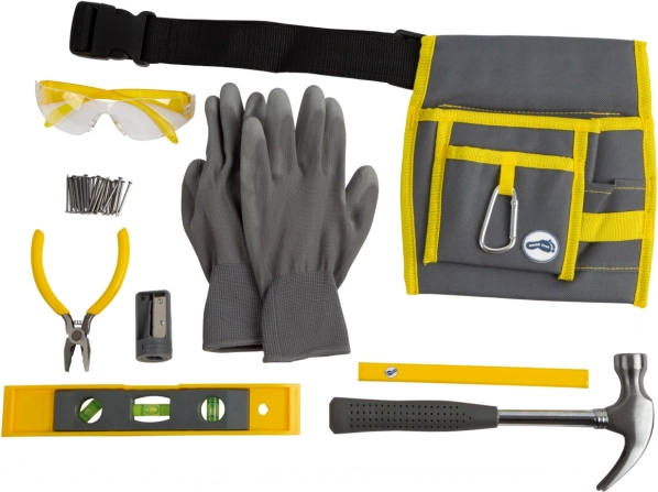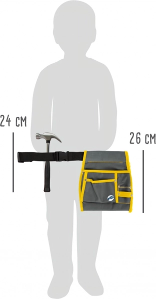 Praktyczna i wytrzymała dziecięca torba/pas marki Small Foot z prawdziwymi narzędziami pozwala małym majsterkowiczom bezpiecznie pomagać dorosłym. Zestaw zawiera 10 elementów, w tym młotek, kombinerki, rękawice robocze (rozmiar 7), poziomicę z magnetycznym paskiem, gogle ochronne, karabińczyk, ołówek i temperówkę. Regulowany pas zapewnia wygodne noszenie i perfekcyjną organizację narzędzi.