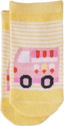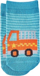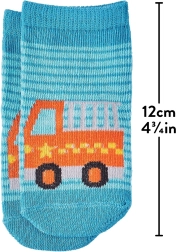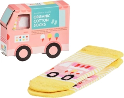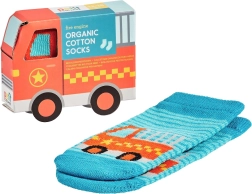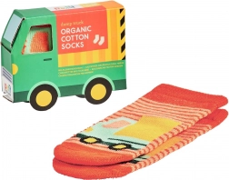 Urocze dziecięce skarpetki z organicznej bawełny dla maluchów zapewniają wygodę i radosny styl. Do wyboru są wesołe motywy pojazdów (autko, wóz strażacki, samochód z lodami lub ciężarówka), a miękki, prążkowany ściągacz sprawia, że skarpetki dobrze trzymają się na stopie. Świetny ekologiczny wybór dla wrażliwej dziecięcej skóry.