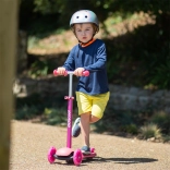 Hulajnoga z trzema kołami zapewnia stabilność i bezpieczeństwo, ułatwiając dzieciom sterowanie.