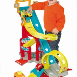 Stacja diagnostyczna, stacja benzynowa i wyrzutnia samochodzików dodają realizmu zabawie i wspierają dziecięcą wyobraźnię.