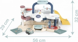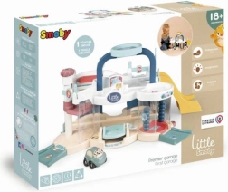 Smoby Little mój pierwszy garaż to wspaniała zabawka pełna zabawnych funkcji przeznaczonych dla najmłodszych. Garaż zawiera magiczną windę, myjnię samochodową z obrotowymi szczotkami, stację benzynową, lądowisko dla helikopterów i wiele innych elementów, które umożliwiają dzieciom rozwijanie wyobraźni i koordynacji podczas zabawy w akcje lądowe i powietrzne.