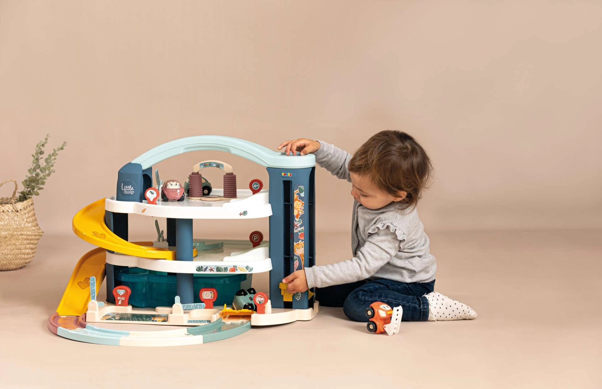 Solidne wykonanie i zaokrąglone kształty zapewniają bezpieczną zabawę nawet dla najmłodszych. Zintegrowany uchwyt do przenoszenia oraz schowek na autka ułatwiają utrzymanie porządku i przenoszenie zabawki. Marka Little Smoby francuskiego producenta SMOBY dba o jakość i wspiera zdrowy rozwój dzieci od 1924 roku.