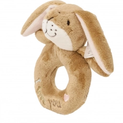 Ta urocza grzechotka w kształcie króliczka inspirowana książką Zgadnij, jak bardzo cię kocham przynosi radość i zabawę dla najmłodszych. Wykonana z miękkiego pluszu, z haftowaną buzią i napisem I love you, jest idealnym prezentem stymulującym zmysły dziecka.