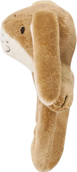 Króliczek z długimi uszami i haftowaną buzią zachęca dzieci do zabawy.